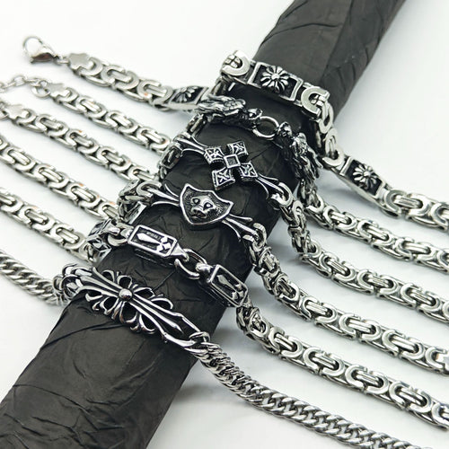 Chrome Hearts 925 Sterling silver Cross Motif Curb Chain Bracelet
